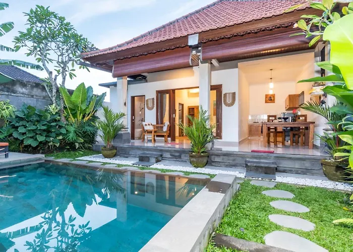 从Adhi Villa到乌布Pura Bukit Dharma Durga Kutri步行只需8分钟就到了,设有大厨房。 Adhi Villa住所位于乌布的科德瓦坦区,配有私人游泳池